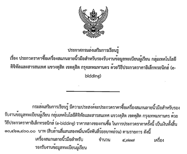 ประกาศประกวดราคาเครื่องสแกนลายนิ้วมือ