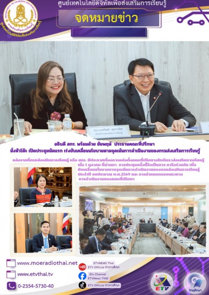 - ดร.เกศทิพย์ ศุภวานิช อธิบดี สกร.พร้อมด้วย ชัยพฤษ์ เสรีรักษ์ ประธานคณะที่ปรึกษา หารือร่วมกันเพื่อขับเคลื่อนนโยบายตามจุดเน้นการดำเนินงานของ กรมส่งเสริมการเรียนรู้